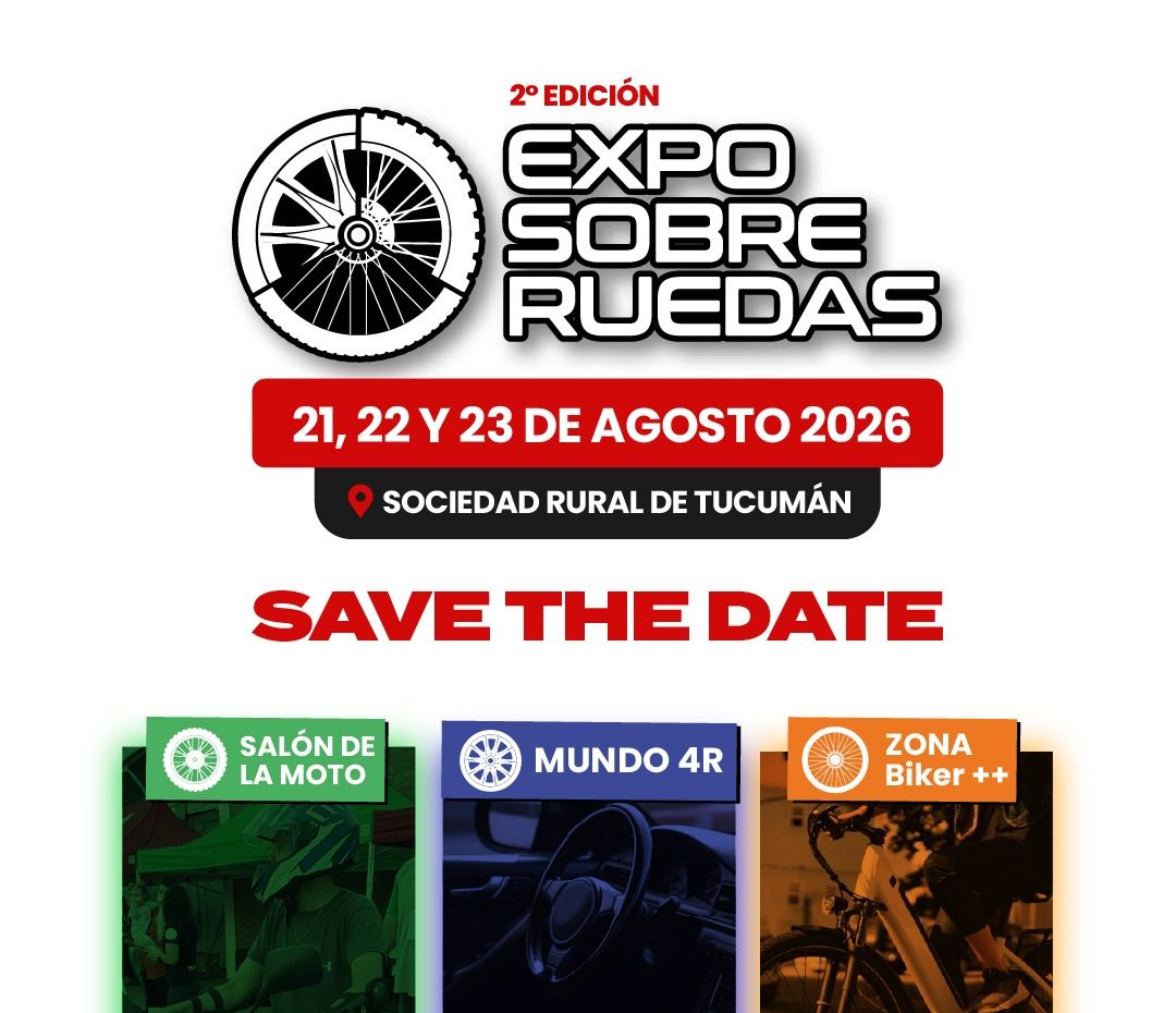 Luego del sorpresivo acompañamiento del público en su primera edición, llega la Expo Sobre Ruedas 2da Edición, con fecha confirmada para el 21, 22 y 23 de agosto de 2026 en la Sociedad Rural de Tucumán, prometiendo más propuestas, sorpresas y experiencias para vivir el evento del año.